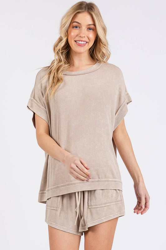Lounge Love (Taupe) Rib Mineral Wash Top