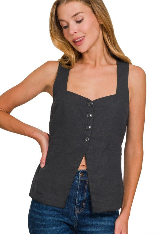 After Party (Black) Linen Blend Vest