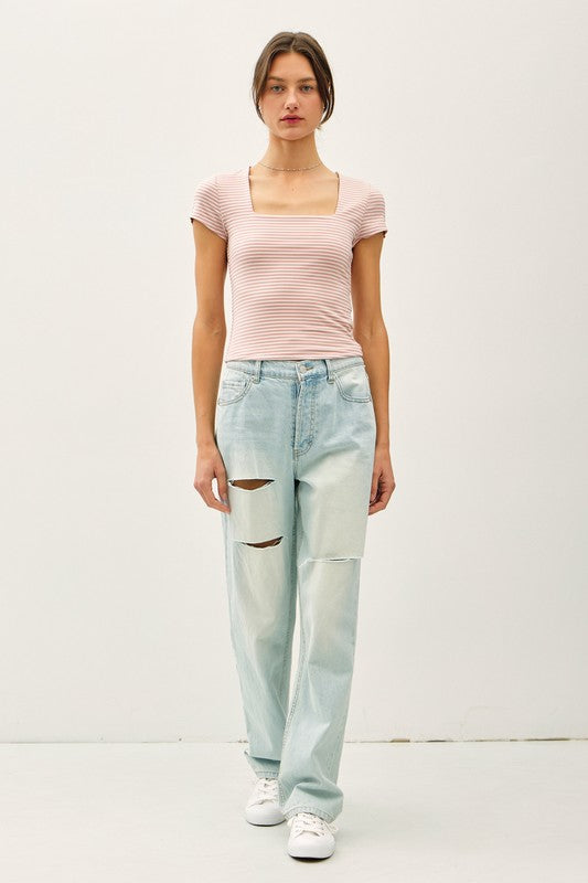 Feel Good (Mauve) Stripe Double Lined Top