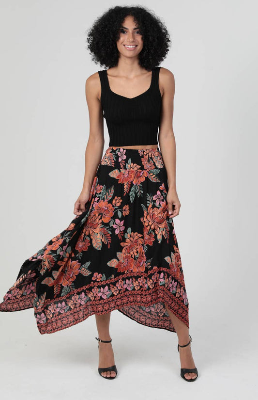 Living It Up Floral Hanky Hem Skirt