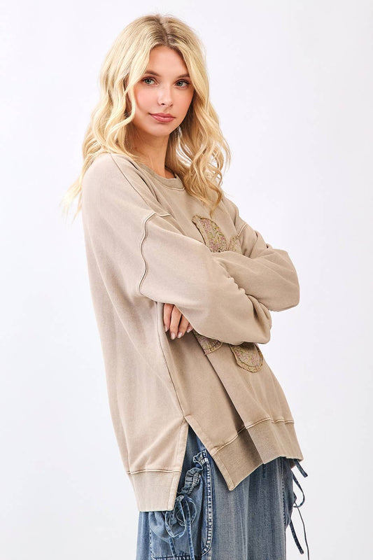Fall Frolic (Mocha) Patched Flower Top