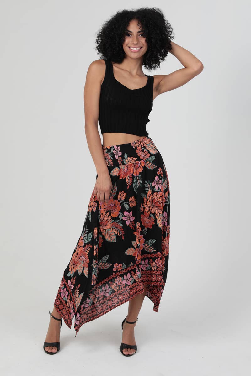 Living It Up Floral Hanky Hem Skirt