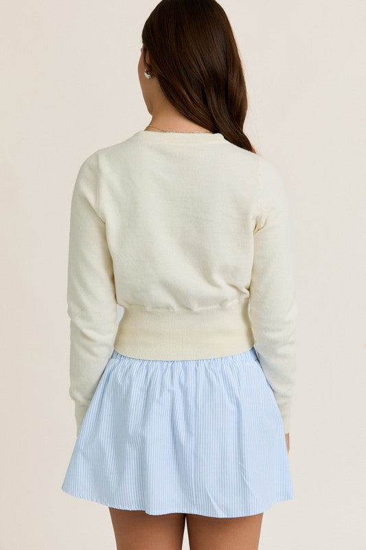 Add a playful twist to your layering game with our long sleeve round neck bow embroidered cropped sweater cardigan. Adorned with charming bow details, this cardigan combines cute and cozy in one must-have piece. The cropped length pairs perfectly with high-waisted bottoms, while the soft knit fabric keeps you comfortable all day long. Style it buttoned up for a sweet, feminine vibe or leave it open for a casual, laid-back look. A versatile pick for fall, winter, and beyond! #BowEmbroideredCardigan #CroppedSweater #RoundNeckStyle #CozyAndChic #LayeringEssential #FallFashion #WinterWardrobe #FeminineStyle #CuteAndTrendy #WardrobeGoals