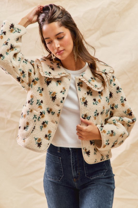 Dolled Up Floral Doll Collar Sherpa Jacket