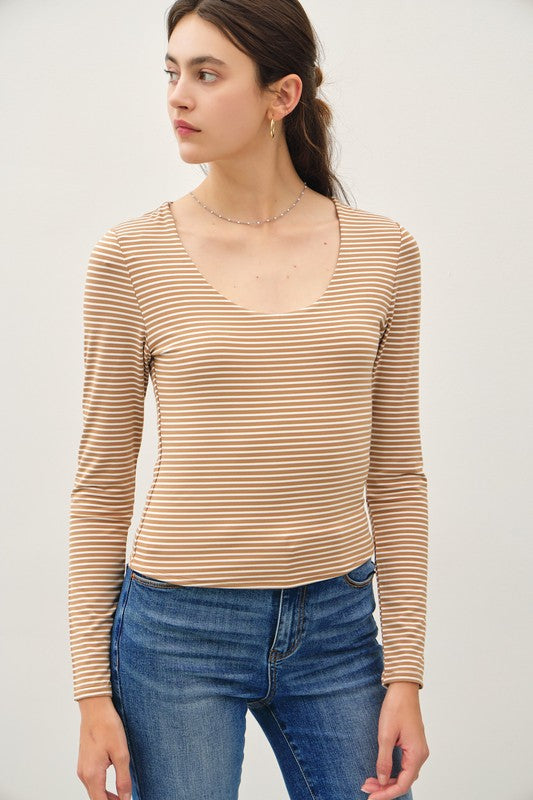 Double Layer (Mocha) Stripe LS Top