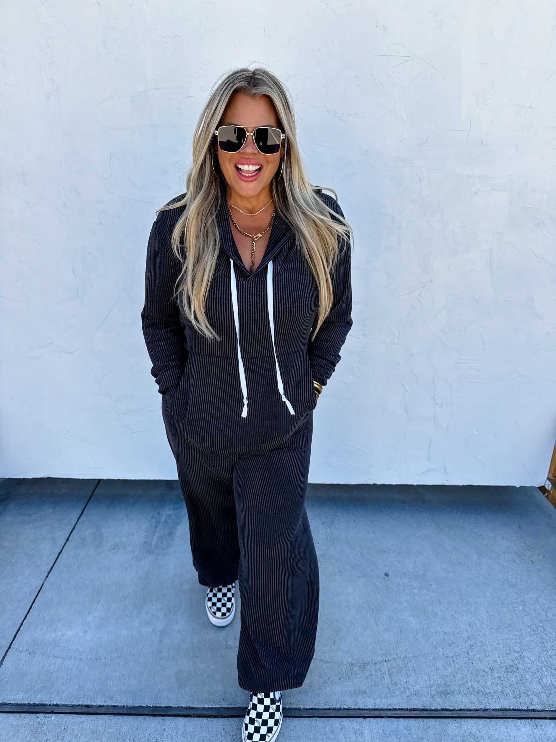 Hayden (Charcoal) Ribbed Hoodie Jumpsuit
