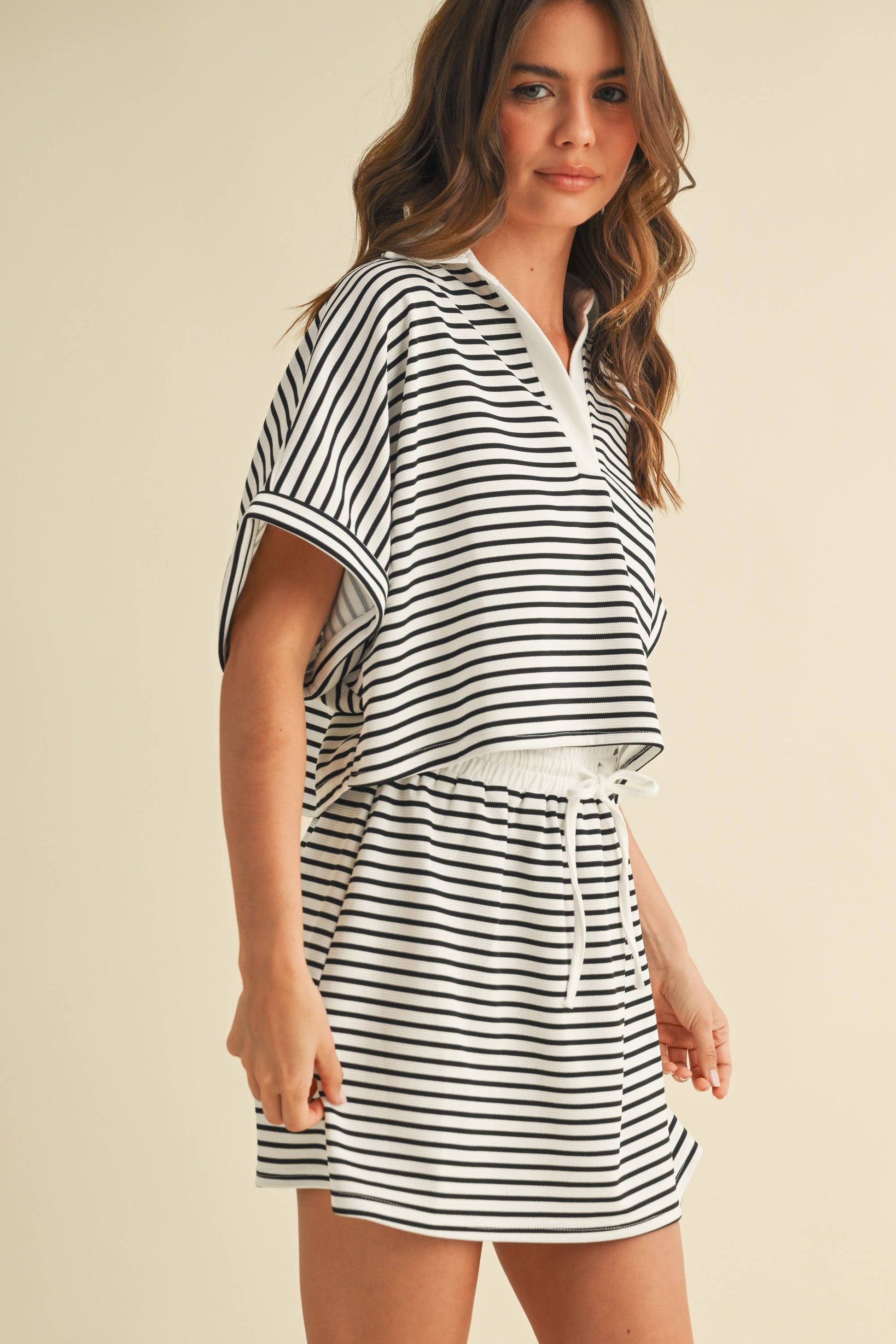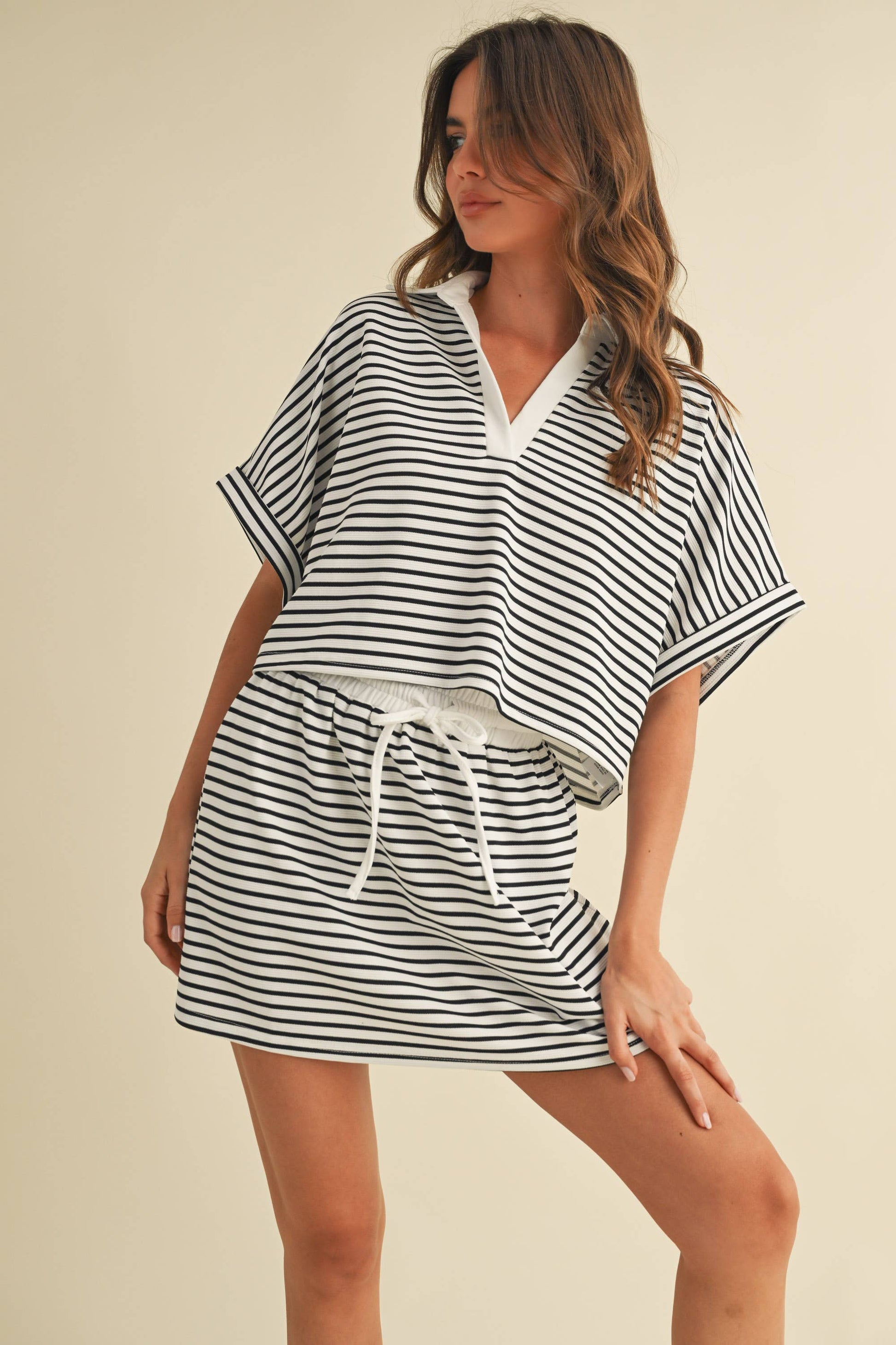 Adorable Black/White Sporty Casual Skirt. Elastic Waist with Tie.