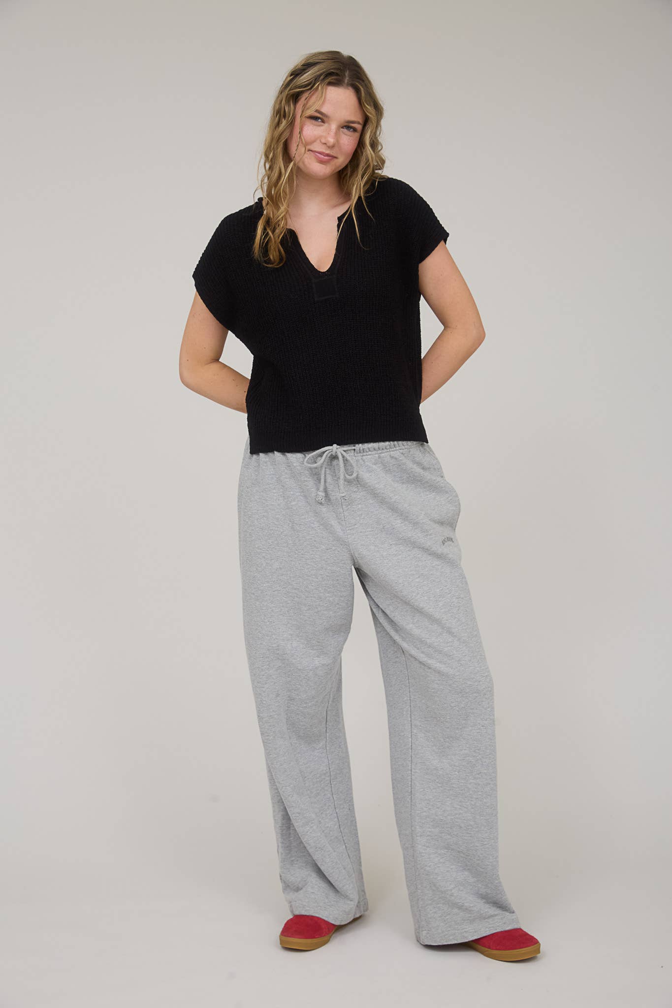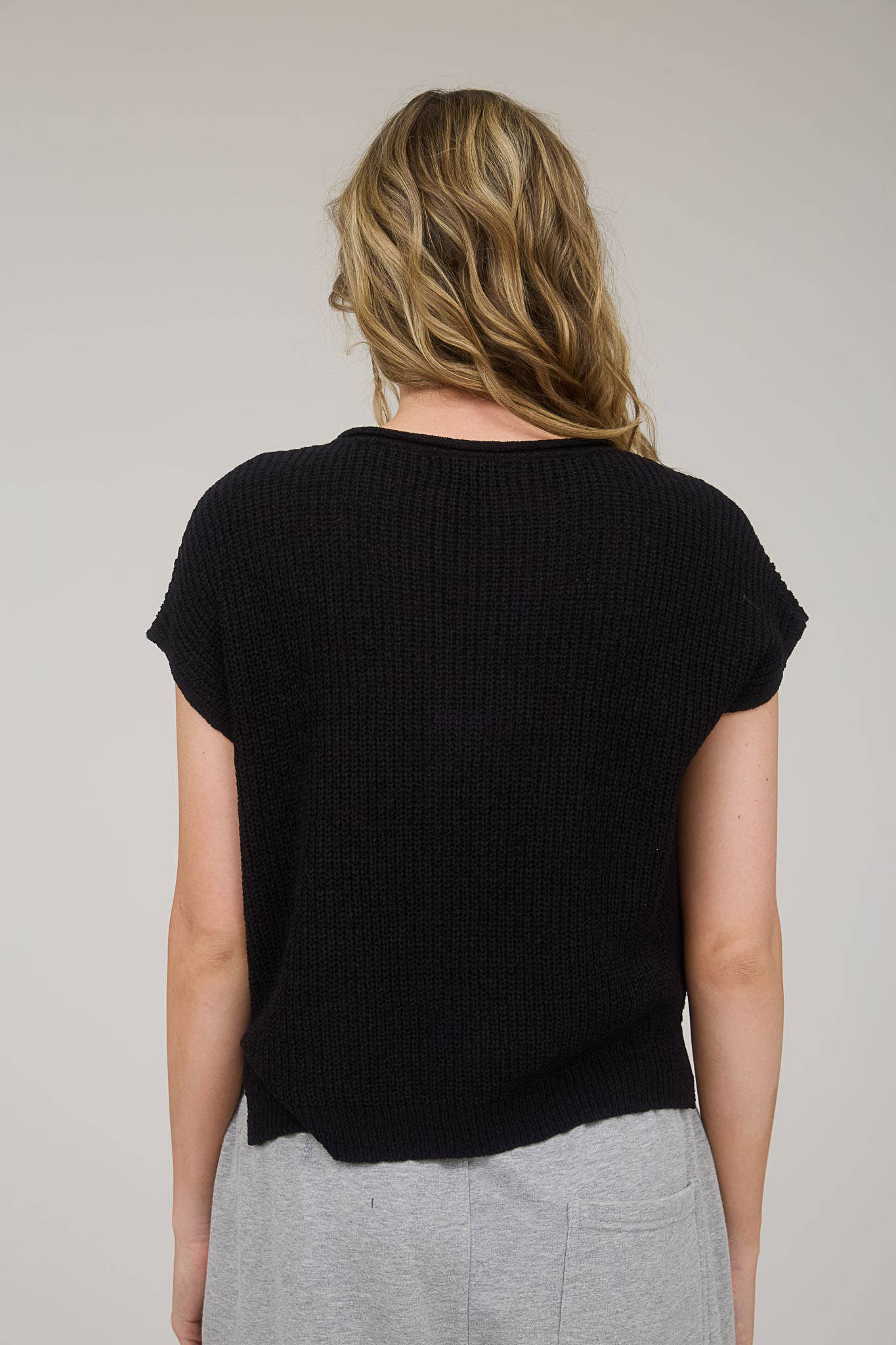 Day Trip (Black) SS Split Neck Sweater